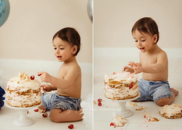 Der erste Geburtstag ist für die Eltern etwas ganz besonderes. Das erste Mal feiert man die Geburt des Kindes mit Geschenken und vor allem Kuchen. Deshalb haben Elias Eltern sich an diesem Tag ein ganz besonderes Babyshooting gewünscht. Ein Cake Smash Shooting in meinem Fotostudio in München. Anfangs war Elias der Torte gegenüber noch ganz vorsichtig, aber irgendwann hat er gemerkt, dass der Kuchen lecker schmeckt und er hatte seine Freude daran. Das erste Mal mit den Händen in ein Torte greifen und das Naschwerk kennenlernen. Natürlich gabs im Anschluß ein Bad, denn die klebrige Masse musste wieder runter. Elias hat es so sehr genossen. Aber seht selbst. Ein wunderbares Tortenshooting hatten wir.